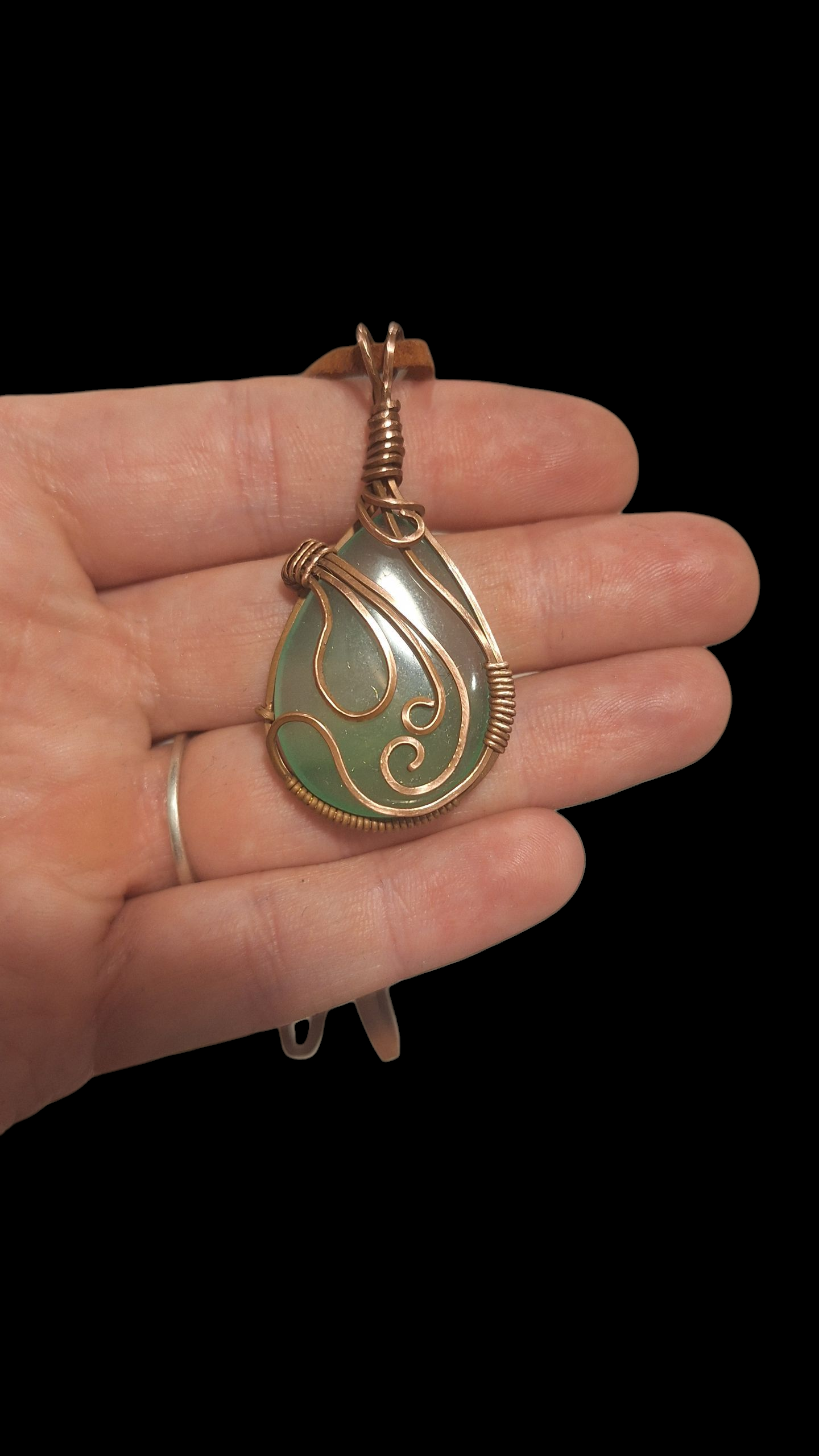 Jadeite wrapped in aged copper.